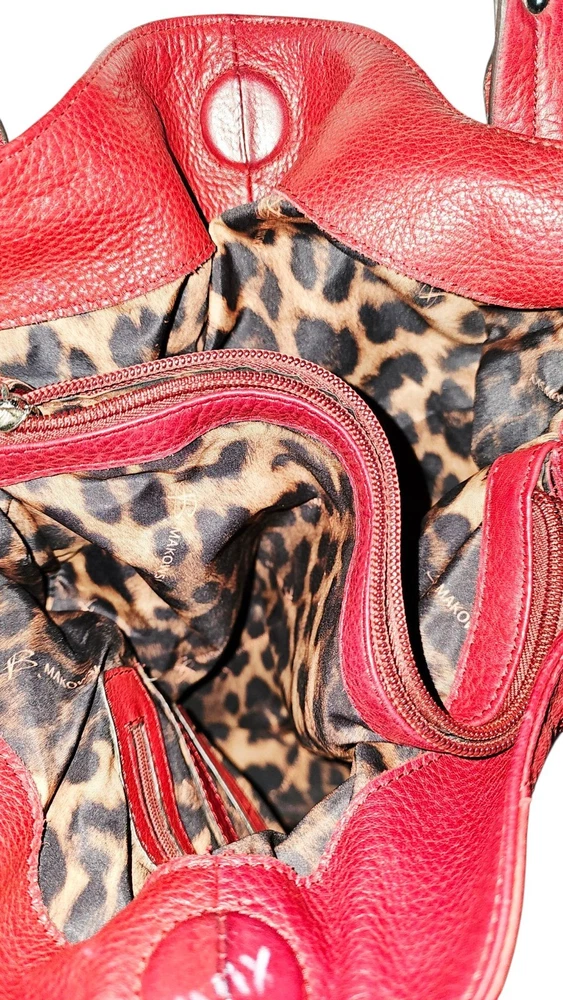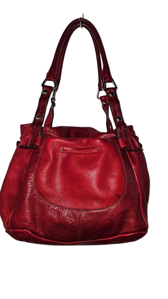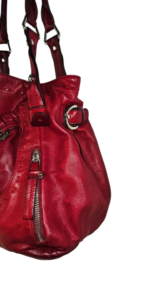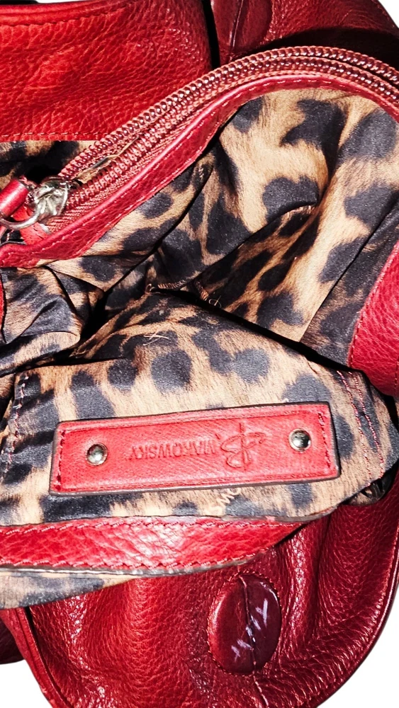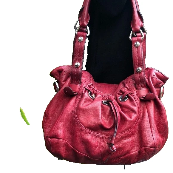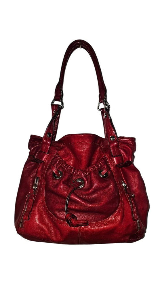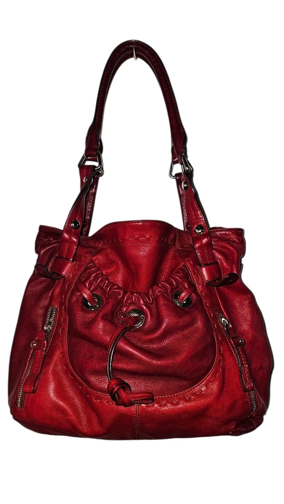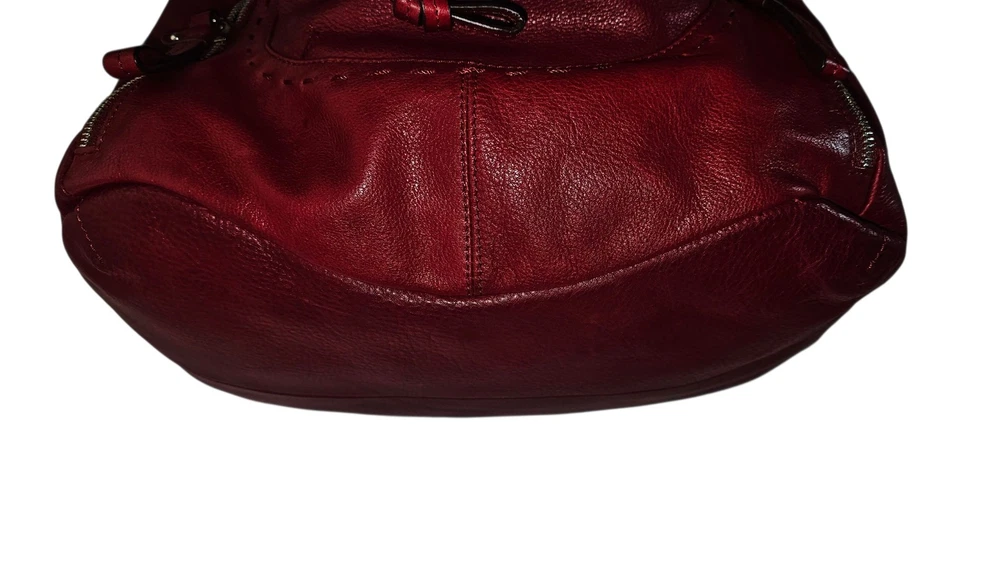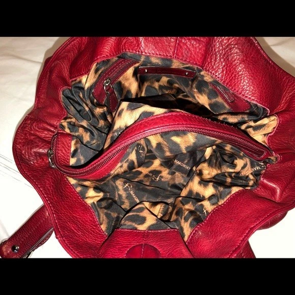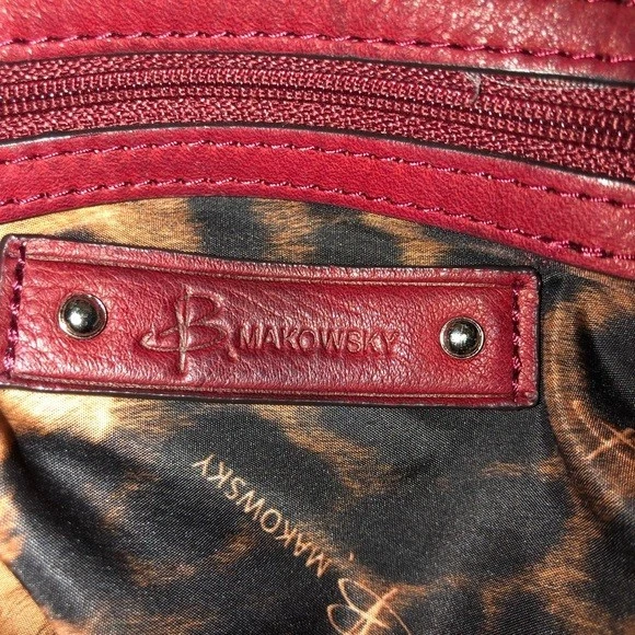 B. Makowsky Rust Leather Hobo Handbag with Chunky Silver Hardware