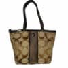 SIGNATURE STRIPE TOTE (COACH F21950) BRASS/KHAKI/MAHOGANY