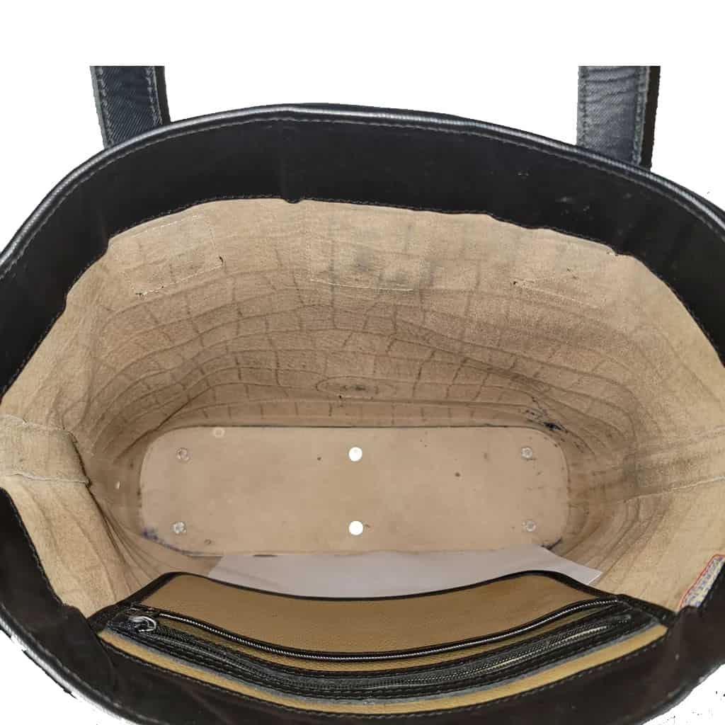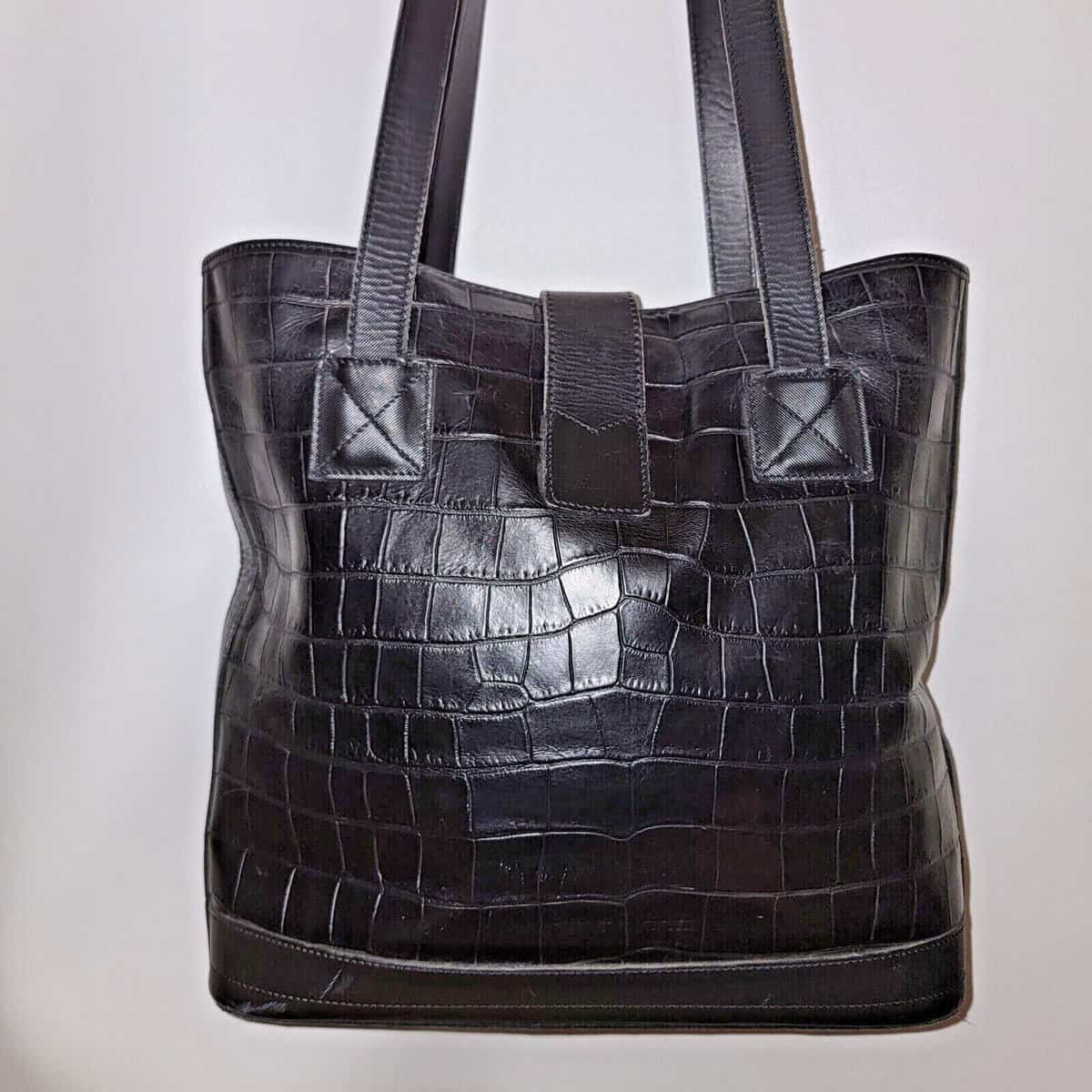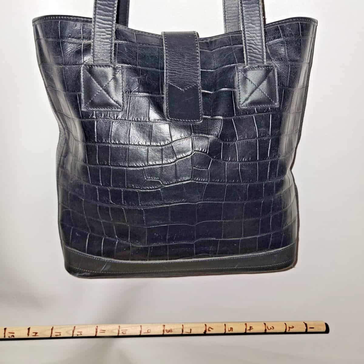 Measures: 12″ x 13.5″ x 3.5″ with a 13.5″ shoulder strap. Two small pockets inside.